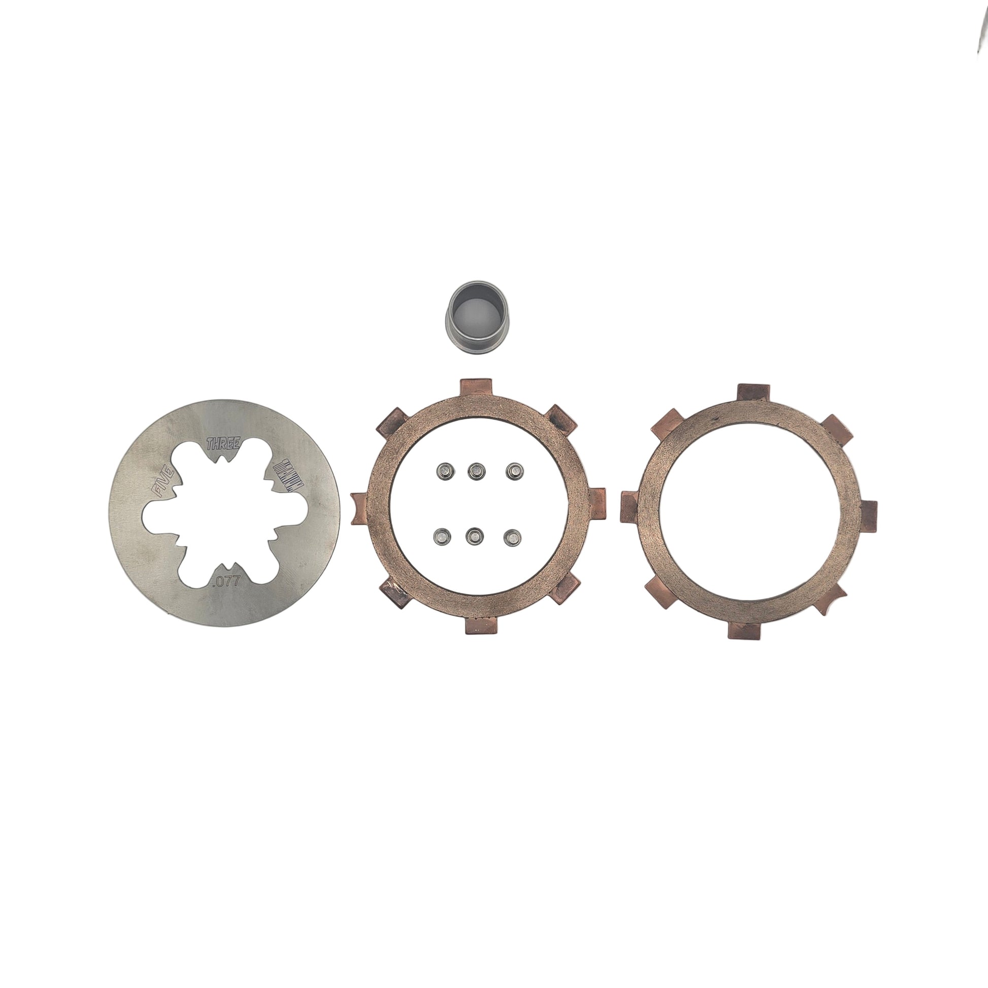 This kit offers our #10-32 Titanium Lever Plate Bolts, 1 floater for a two disk, 2 for a three disk, frictions, and a stainless steel. bearing race.